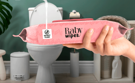 Wet wipes look the same but 90% are not meant for flushing. Check the packaging for “Do Not Flush” and when in doubt, throw it out!